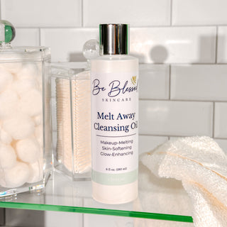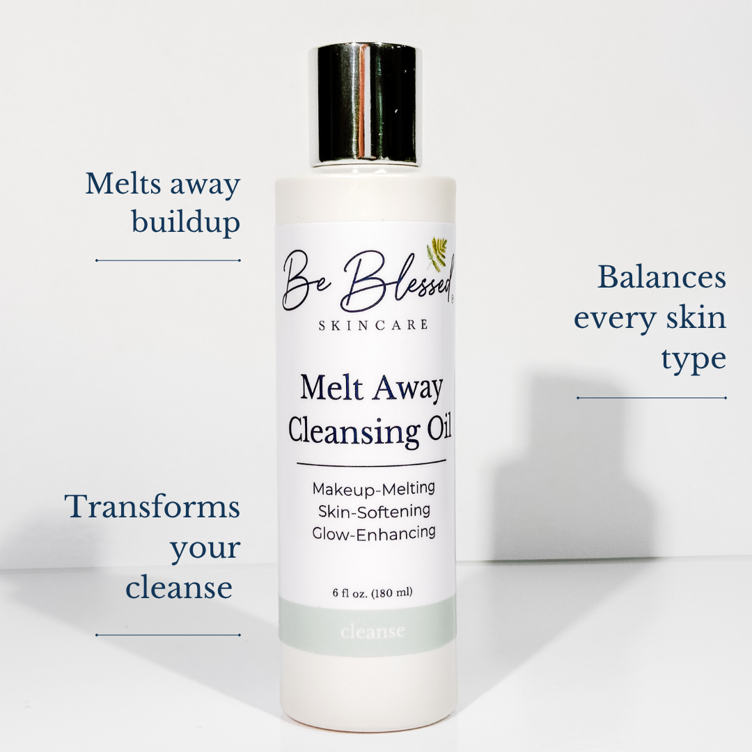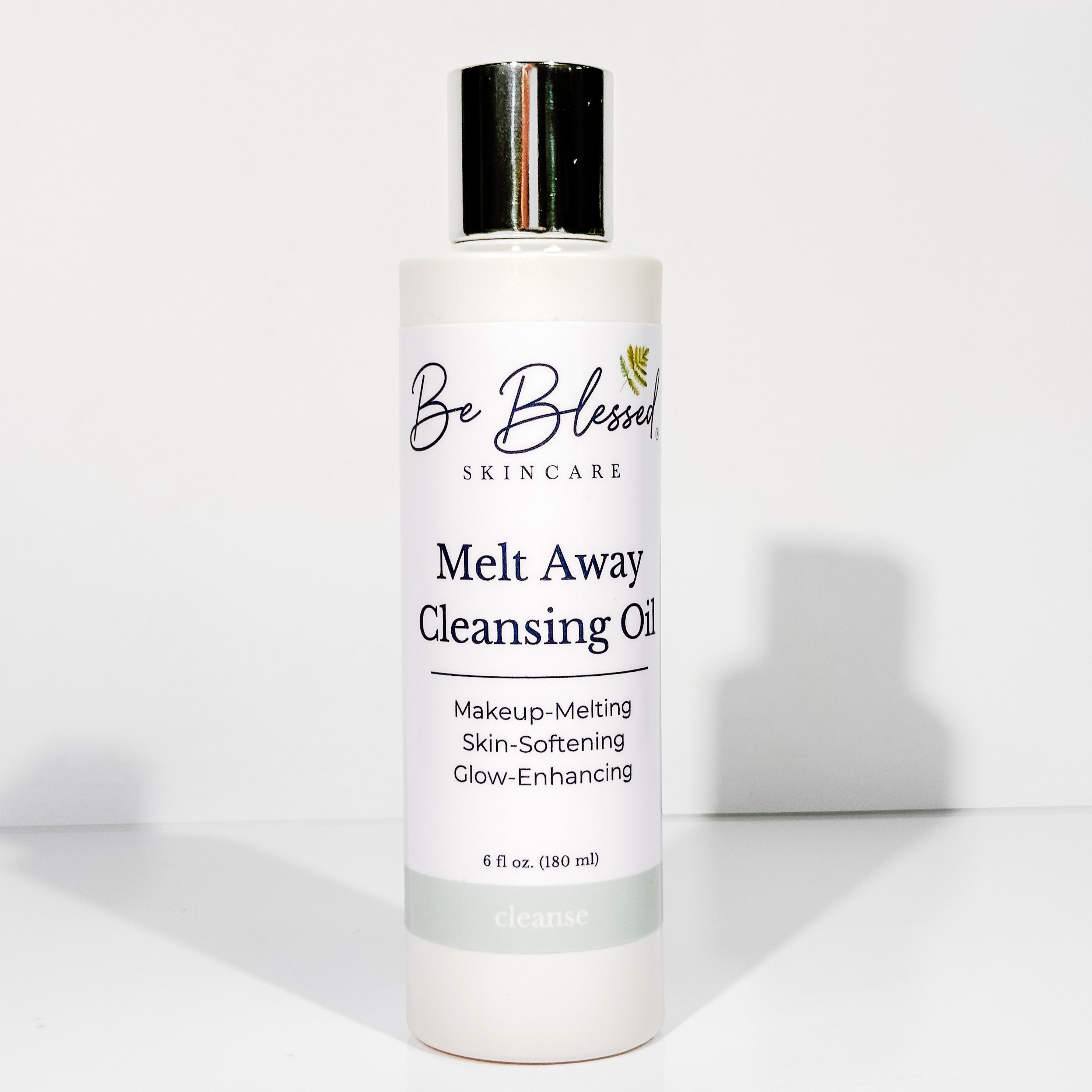 Melt Away Cleansing Oil is the first step of your double-cleanse routine: a silky blend of grapeseed, sunflower, rice bran, and pumpkin seed oils that melts away SPF, makeup, and buildup—no harsh rubbing, no residue, no breakouts.