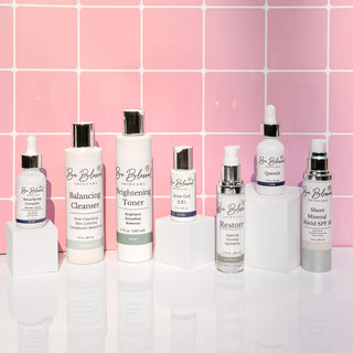 Everything you need to treat current acne breakouts, prevent acne scars, and stop future breakouts. This kit is the most effective way to get clear skin fast and to stay clear for life. It includes Balancing Cleanser, Calming Toner, Mandelic Serum 5%, Acne Gel 2.8%, Hydration Balance, Daily Protection, and an Ice Roller. All products are full size.